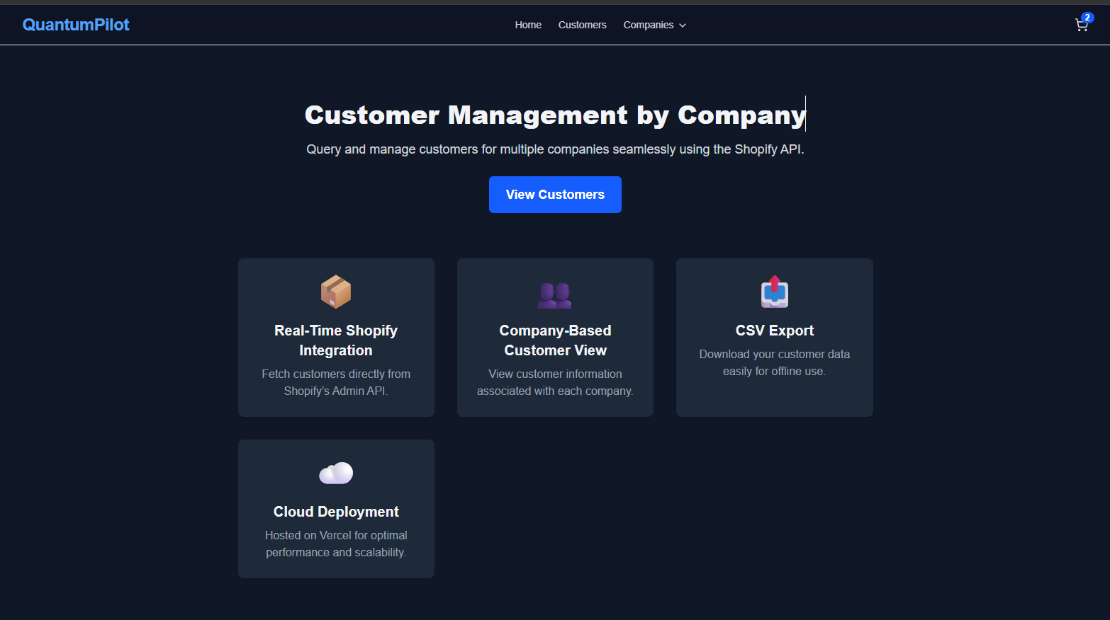 FreelancePlataforma para la gestión de clientes de múltiples compañías utilizando la API de Shopify, con funcionalidad avanzada para exportación de datos.